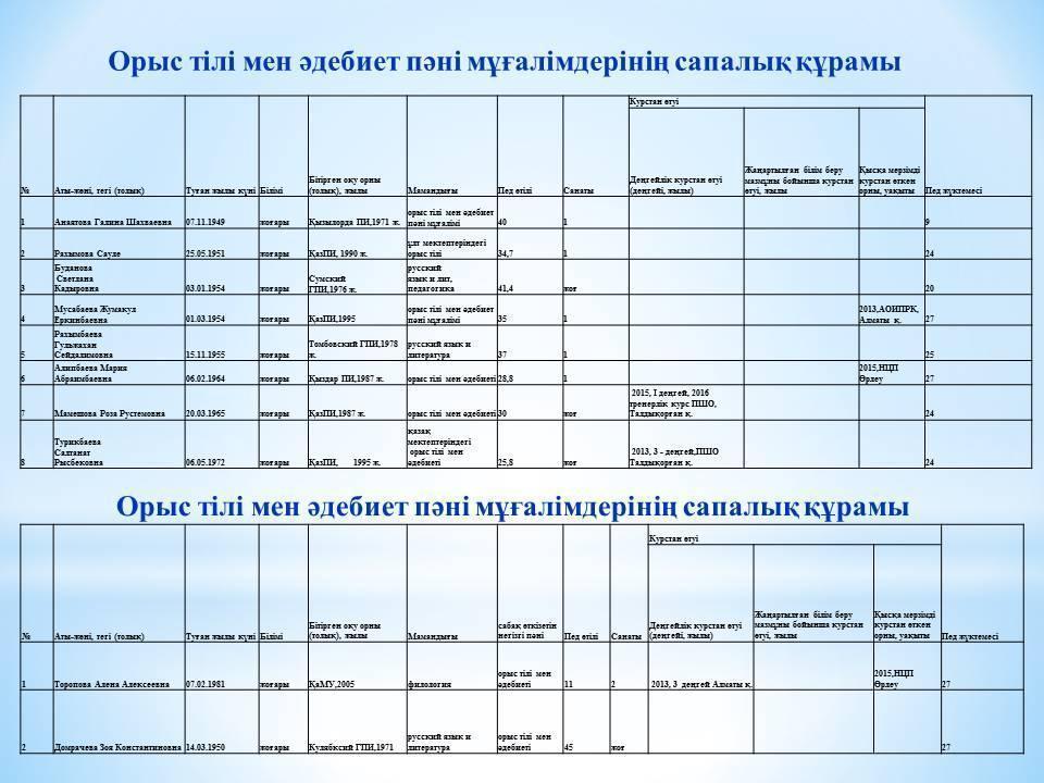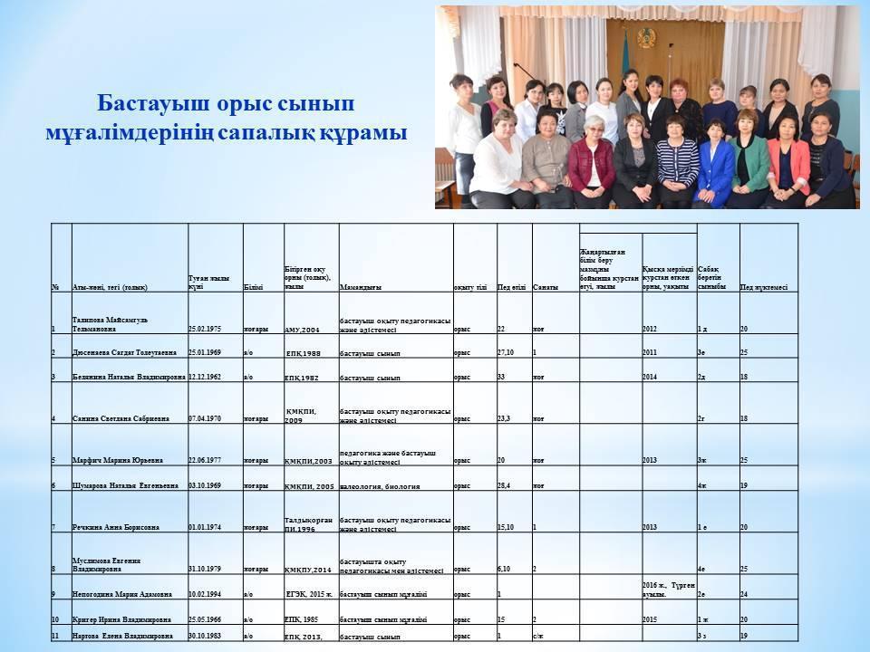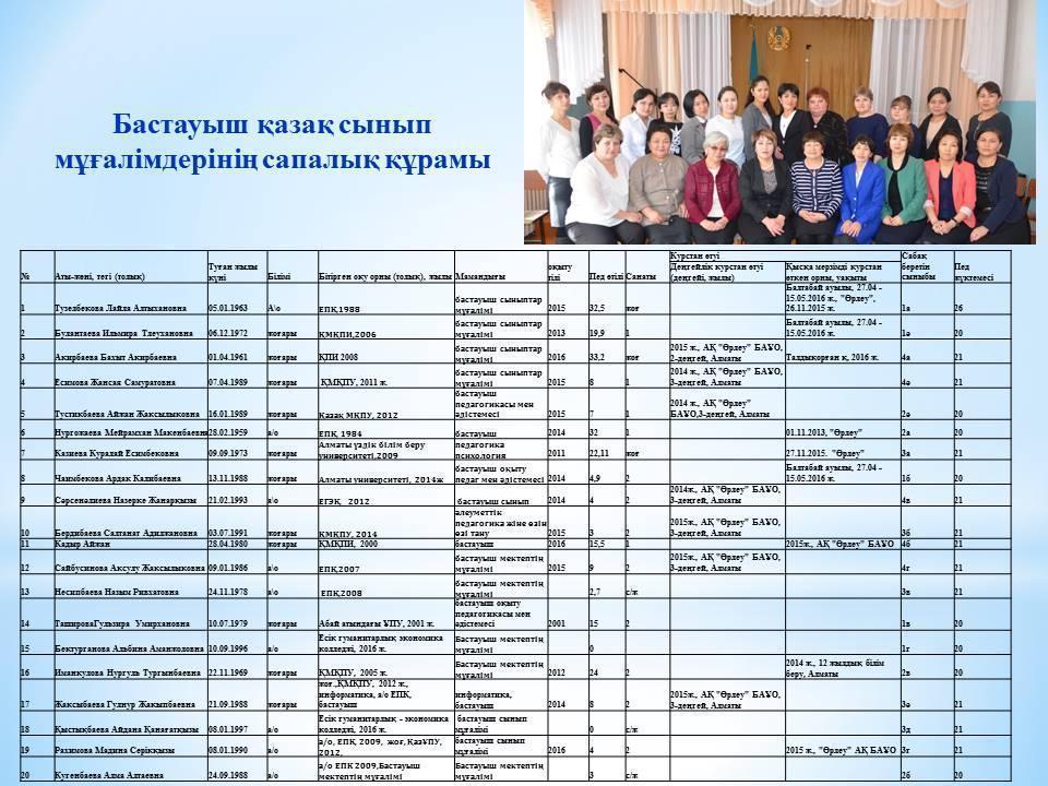 Мектеп әдістемелік бірлестіктерінің сапалық құрамы » Абылай хан атындағы № 4 орта мектебі
