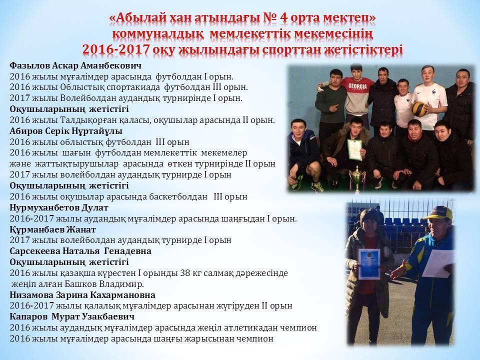 Мұғалім жетістіктері » Абылай хан атындағы № 4 орта мектебі