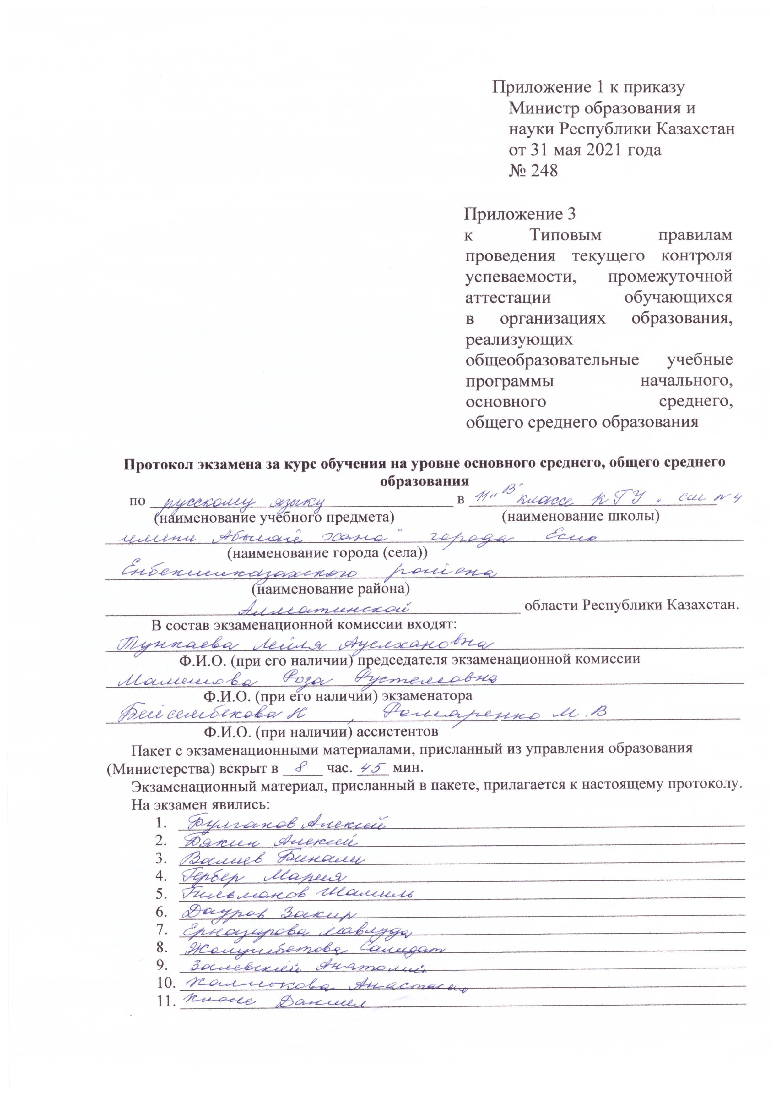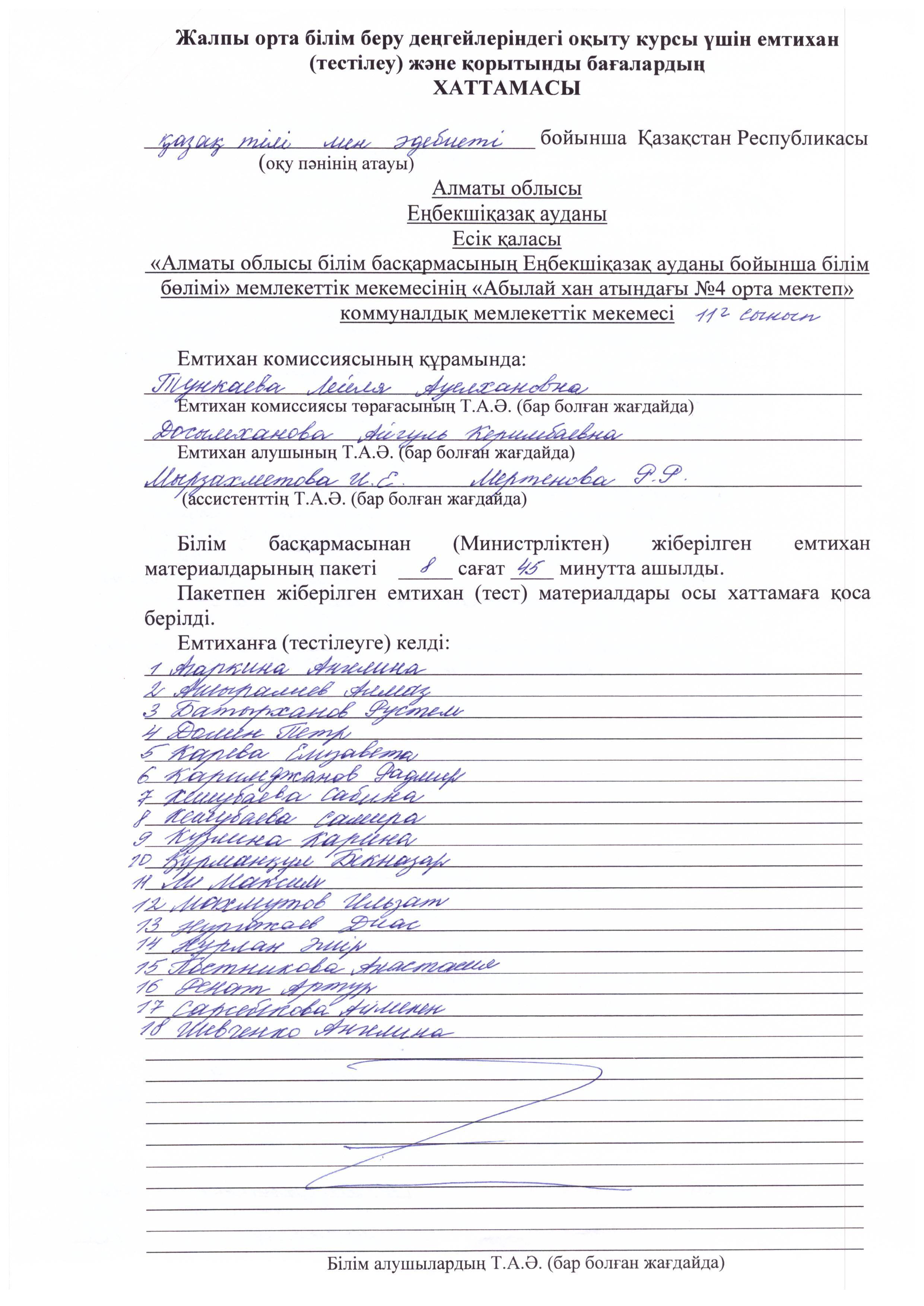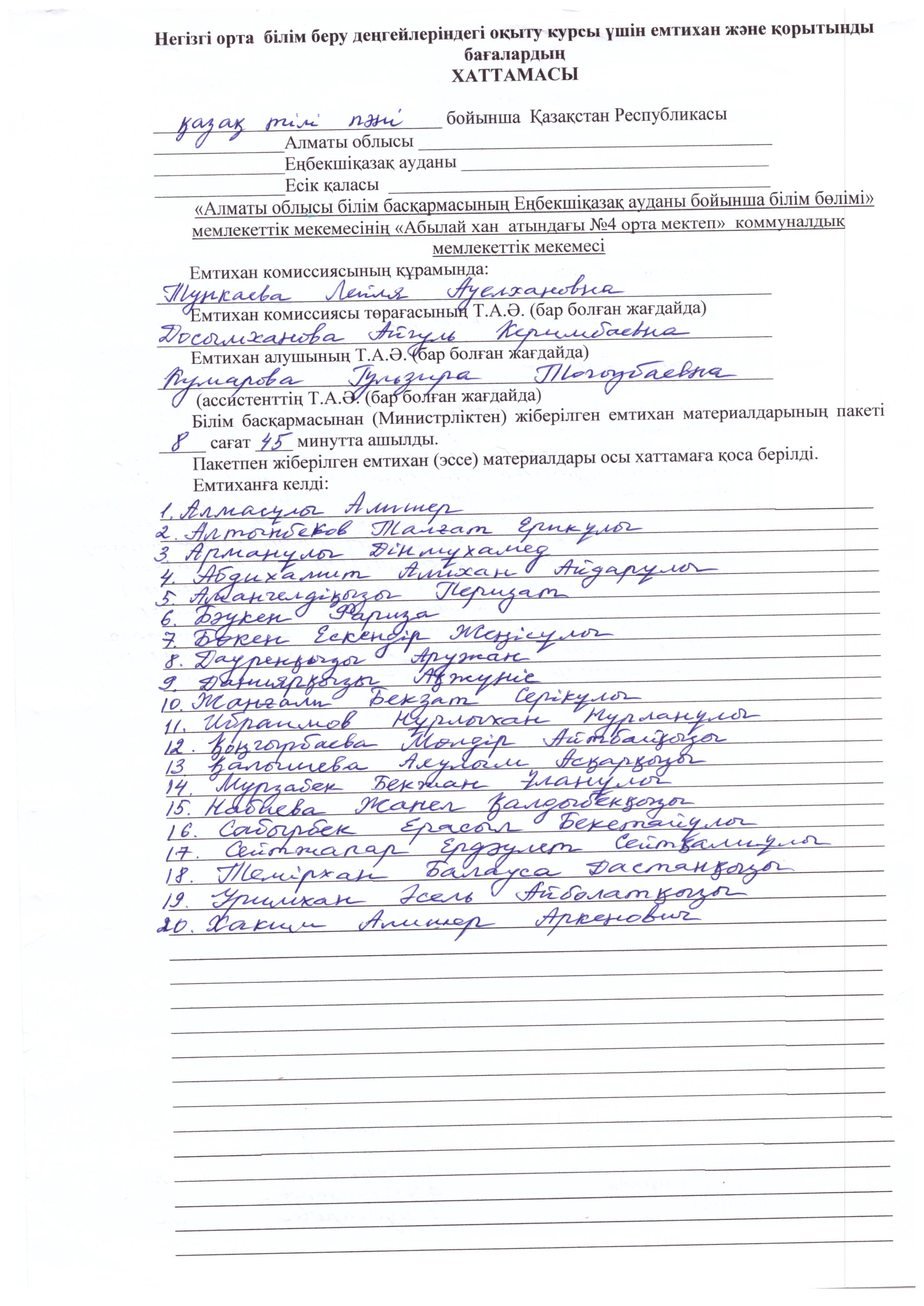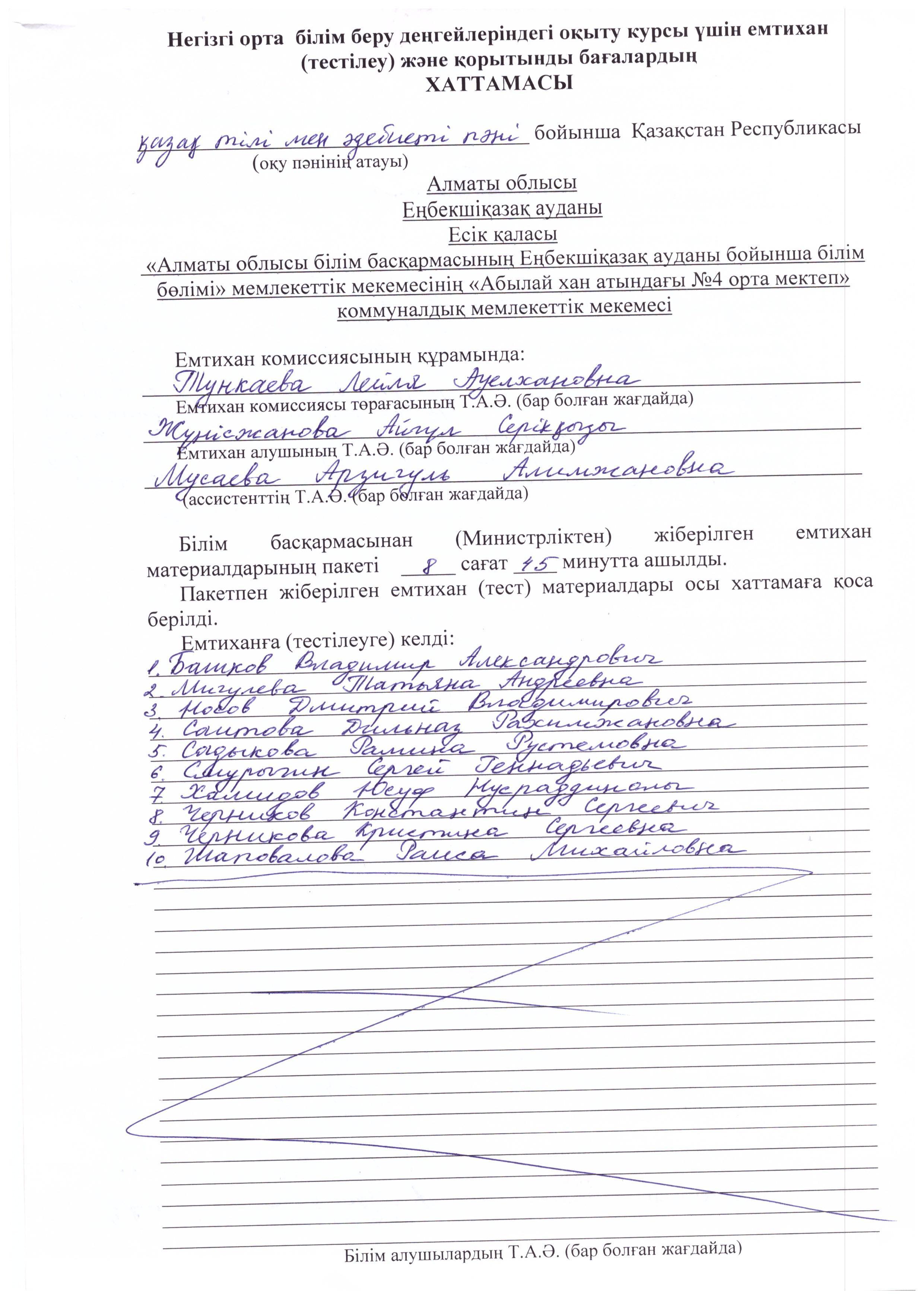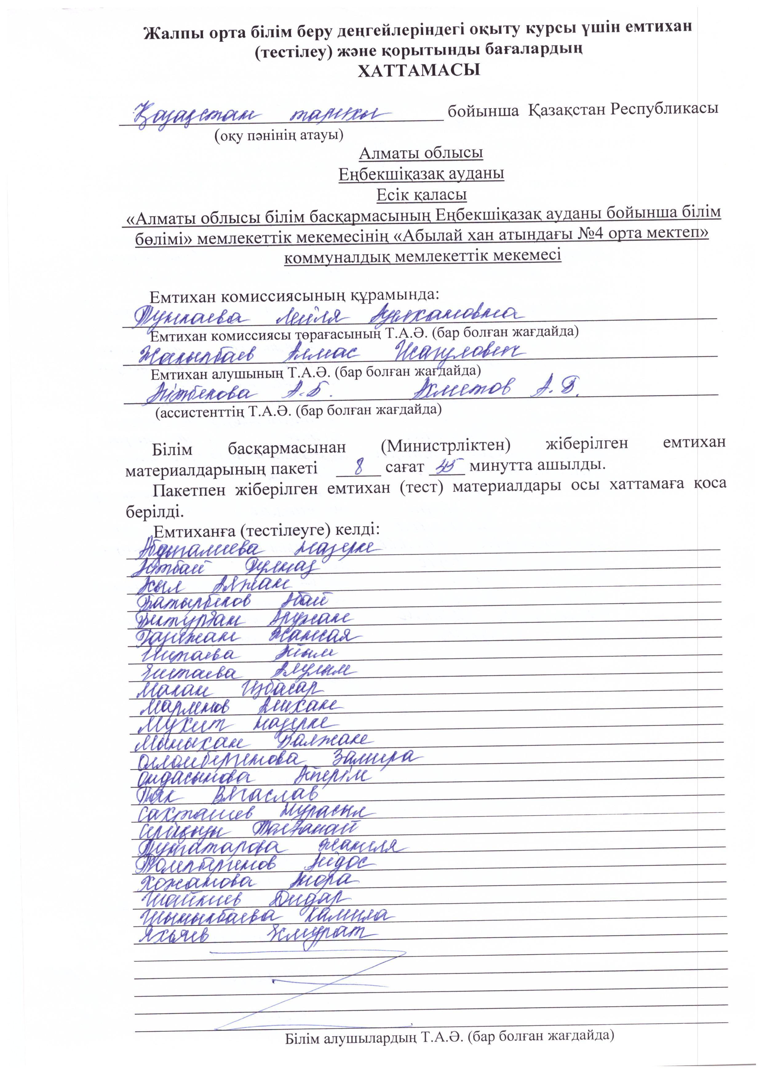 Емтихан 11 сынып 2020-2021 » Абылай хан атындағы № 4 орта мектебі